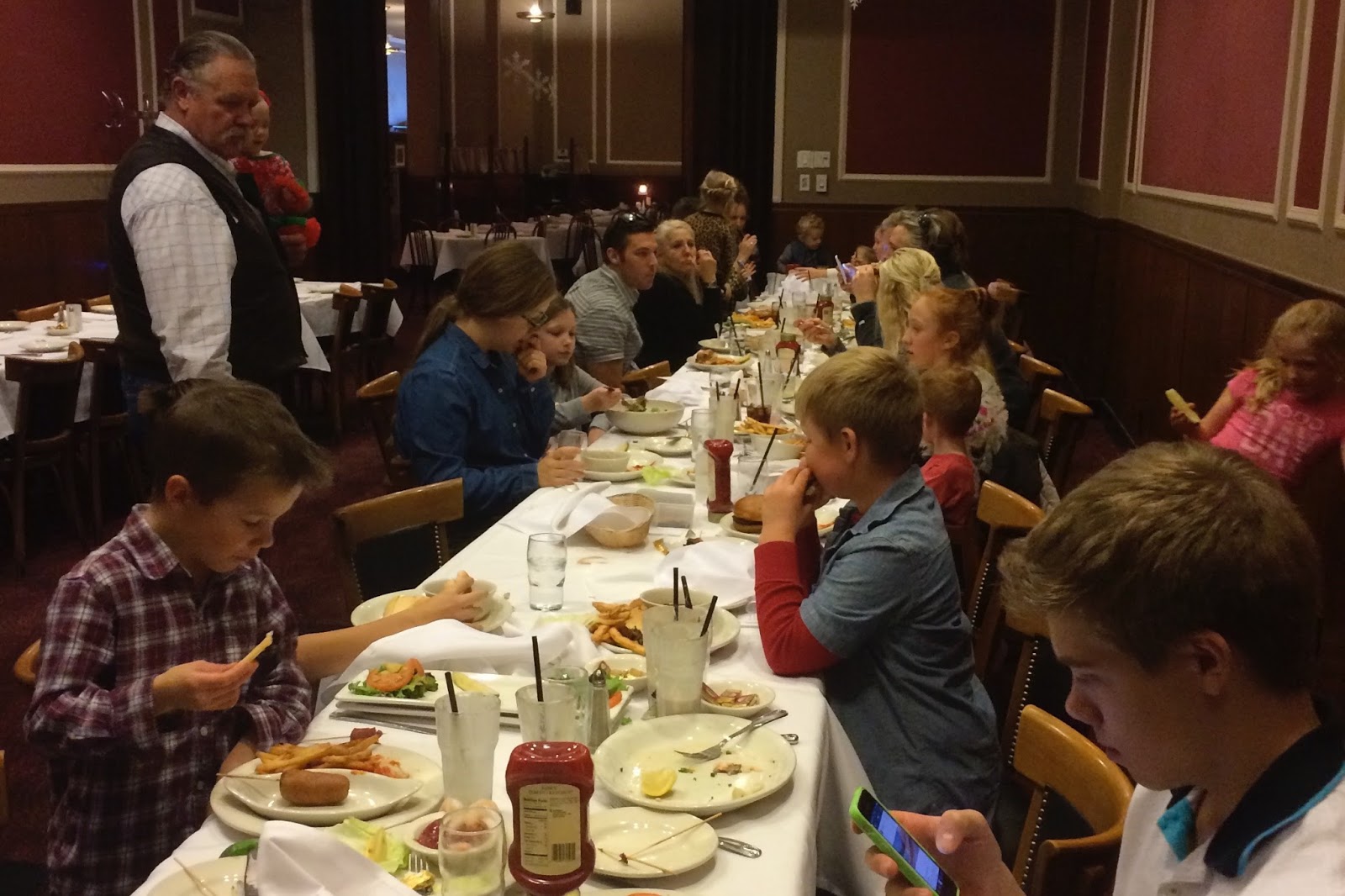 Lamb's Cafe with the Green family on Christmas Eve.  This was the first year the entire family was there.  I love this group.  Afterward our little family went to the Grand America to see the giant gingerbread house and the window displays.